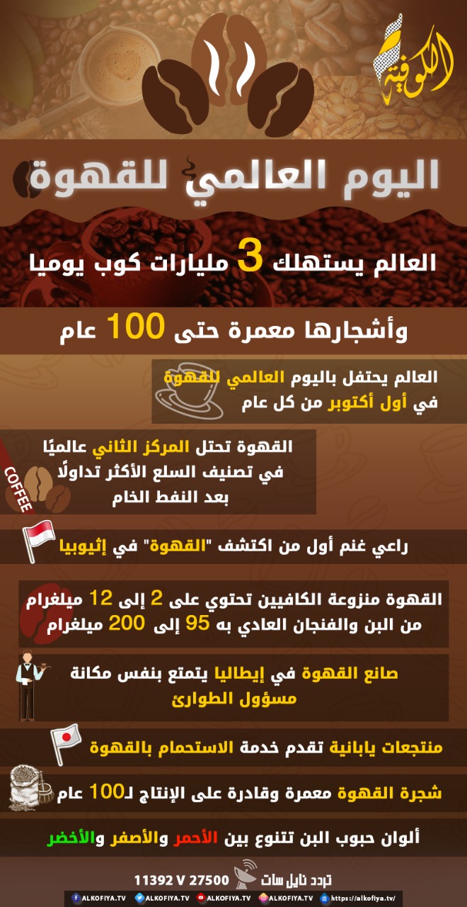 اليوم العالمي للقهوة.. 3 مليارات كوب حجم الاستهلاك اليومي حول العالم