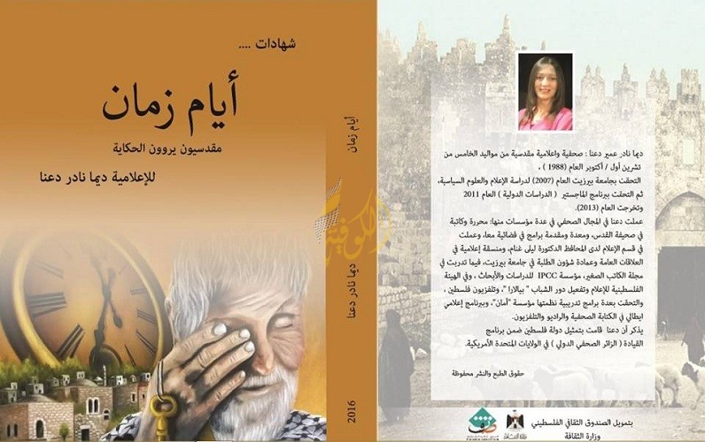 القدس المحتلة: أطلقت الصحفية ديما نادر دعنا، كتاب جديد لها بعنوان "أيام زمان" حيث يقع الكتاب في 160 صفحة من القطع المتوسط، وهو عبارة عن شهادات لشخصيات فلسطينية من القدس ومختلف المدن الفلسطينية.