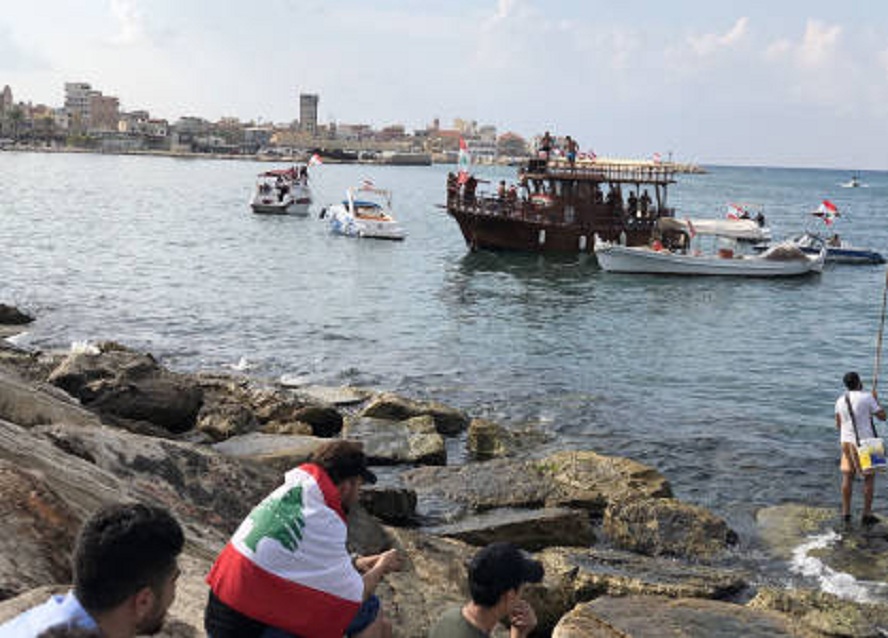 صيادو لبنان يتظاهرون بالمراكب في بحر مدينة صور