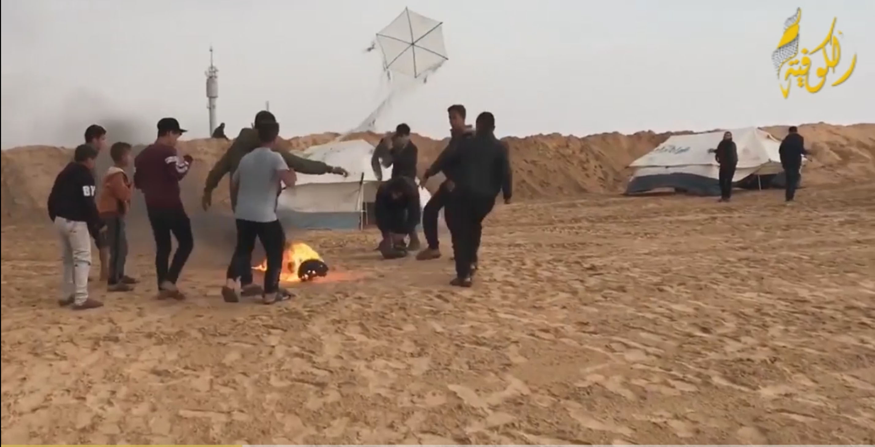 القدس  المحتلة: سقطت طائرة ورقية مشتعلة أطلقها فلسطينيون من قطاع غزة، اليوم الاثنين، في كلية "حمدات" في نتيفوت بالجنوب.