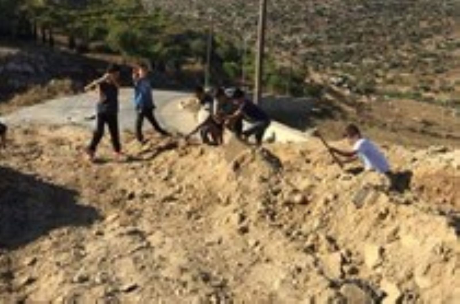 أطفال كوبر يقومون بفتح الطريق الذي أغلقه الاحتلال لقريتهم بمعاولهم وسواعدهم.