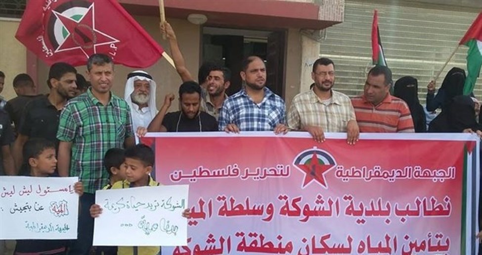غزة: نظمت الجبهة الديمقراطية لتحرير فلسطين صباح اليوم، اعتصامًا مطلبيًا أمام بلدية الشوكة برفح جنوب قطاع غزة، للمطالبة بتوفير مياه لأهالي وسكان المنطقة المنقطعة عنهم منذ أكثر من أسبوع وبصورة مستمرة.