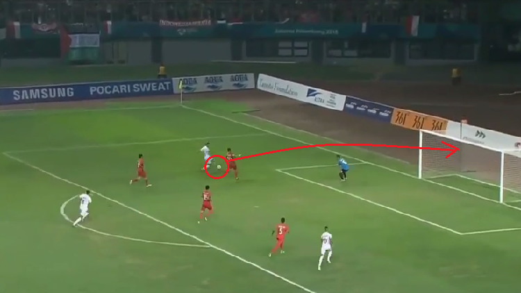وافتتح المنتخب الفلسطيني التسجيل عند الدقيقة الـ16 عن طريق عدي الدباغ بعد متابعته لركلة جزاء نفذها زميله محمد درويش وارتدت من القائم الأيمن للحارس الإندونيسي.