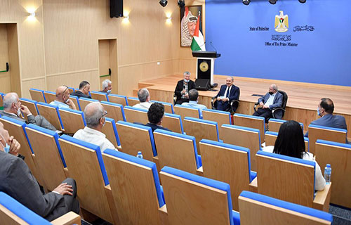عبر رئيس الوزراء محمد اشتية عن استعداده التام للتدخل المباشر لمعالجة اي قضية تواجه القطاع الخاص حال تعثر حلها من قبل الوزارات ذات الاختصاص، مشدداً على تمسكه والتزامه بتعزيز علاقة الشراكة والتعاون بين القطاعين العام والخاص.
