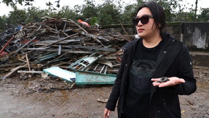 وتُنظف وانغ، المقالب وتلتقط القطع الصغيرة من المعادن والأسلاك من مُورد الكهرباء الرئيسي في تايوان لتُضيف ذوقا إضافيا لملابسها.