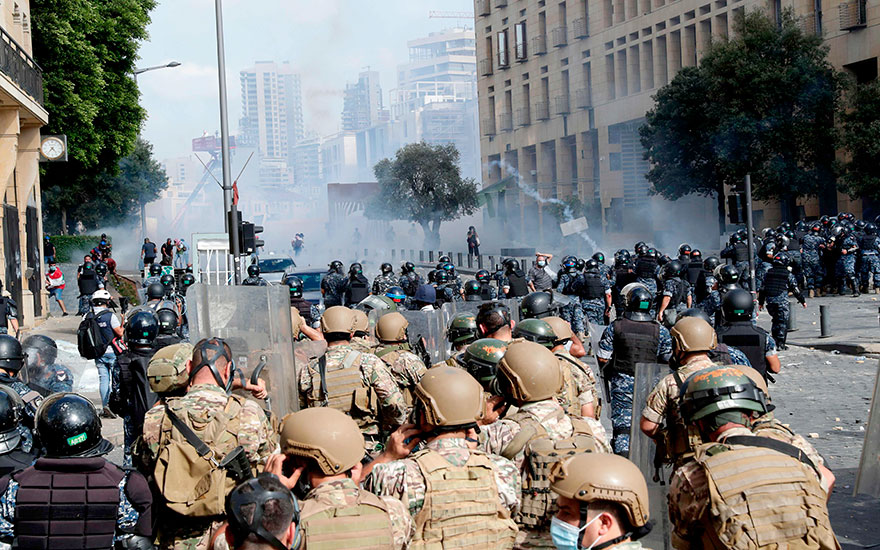 وشهد محيط سرايا طرابلس الحكومي شمالي لبنان، اشتباكات بين متظاهرين وقوات الأمن ما أسفر عن إصابات بين الطرفين، في ظل احتجاجات لليوم الثاني على التوالي بسبب تدهور الأوضاع الاقتصادية وسط فرض قيود قاسية لمواجهة جائحة كورونا.