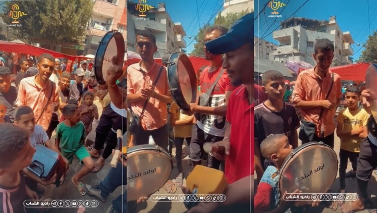 رامي ابو مطرود نازح من خانيونس الى دير البلح يحول نشاطه من مسحراتي الى صاحب فرقة مديح نبوي و يحاول صناعة الفرح خلال الحرب