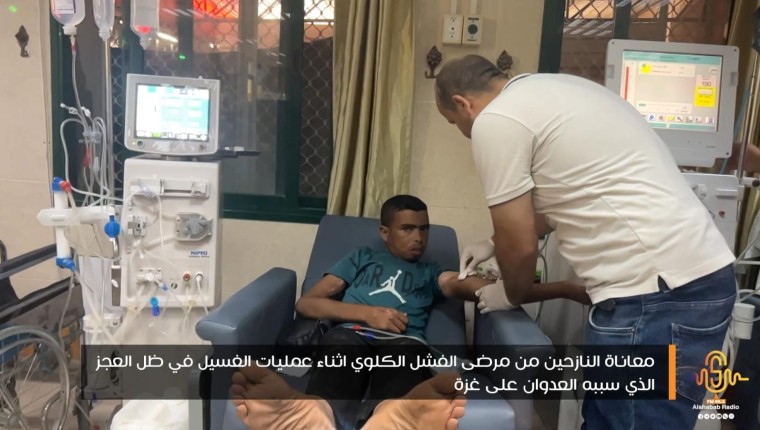 معاناة النازحين من مرضى الفشل الكلوي اثناء عمليات الغسيل في ظل العجز الذي سببه الع.د.و.ان على غزة